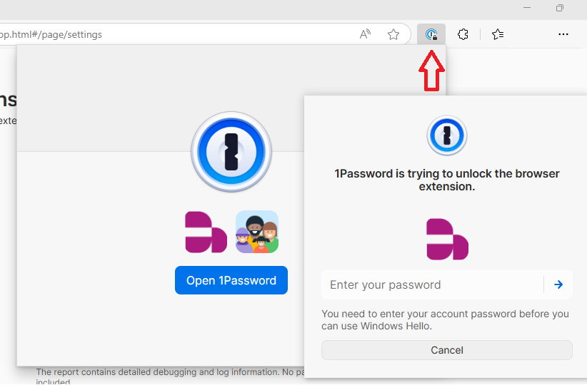 - Click the 1Password icon near the clock in the bottom-right (Windows system tray)